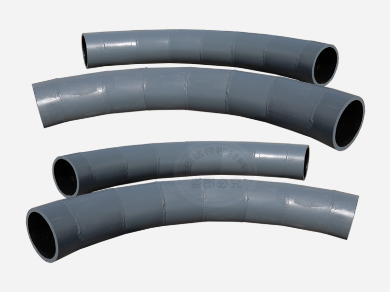 內層為剛玉陶瓷,莫氏硬度在9.0以上,相當于HRC90以上,因此對電力、煤炭、冶金、礦山所輸送的任何介質均有高耐磨性。